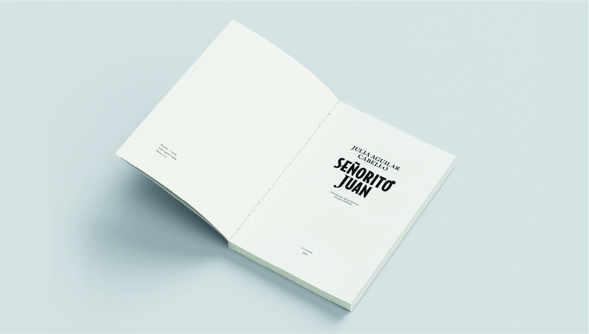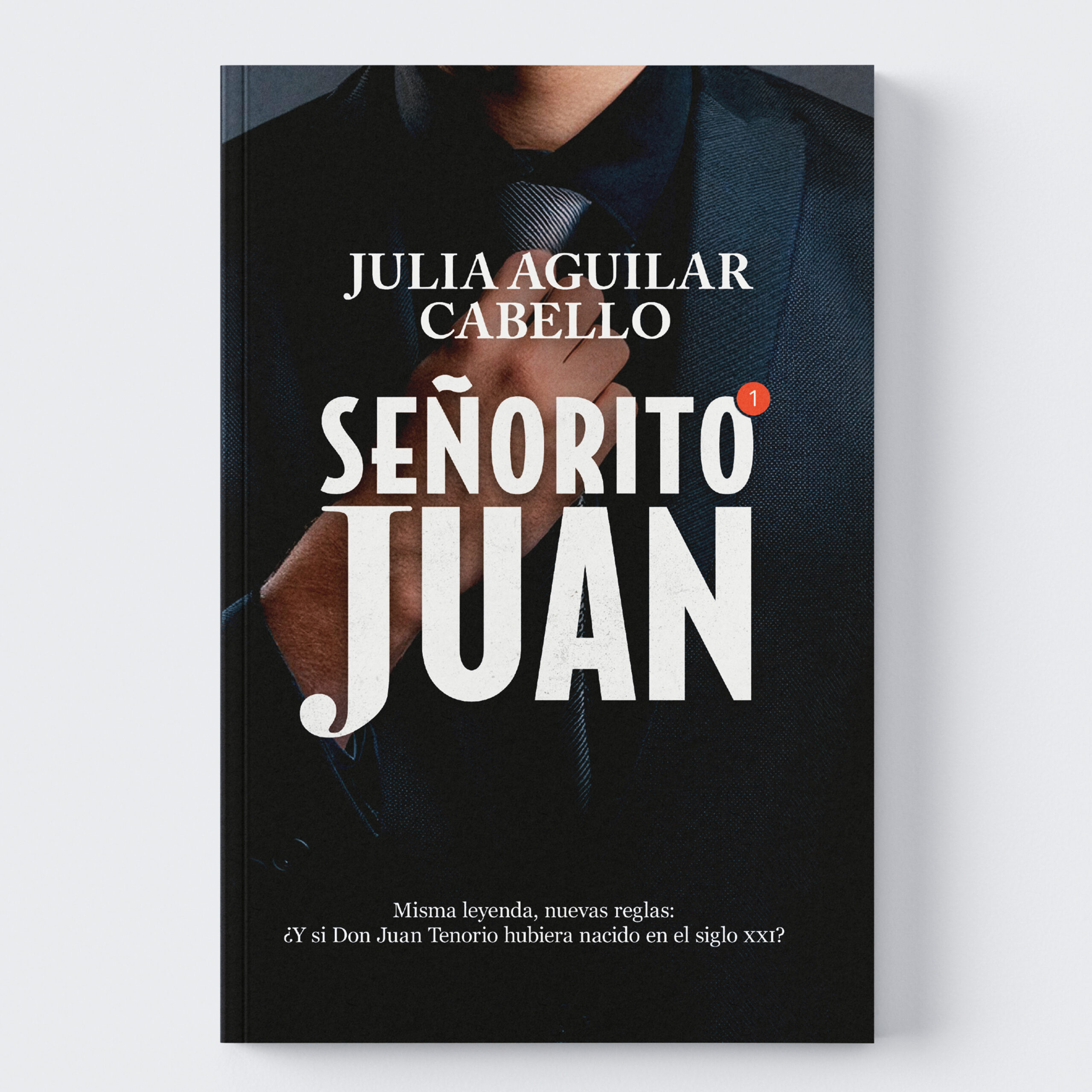La tipografía del título apuesta por un estilo moderno y contundente, con el uso de caja alta para transmitir fuerza y presencia visual. En el diseño aparecen dos recursos clave: por un lado, un globo de notificación inspirado en las apps actuales, que anticipa el tono contemporáneo de la narración. Por otro, la “J” de Juan se destaca con una tipografía distinta: una clásica serif Bodoni. Esta elección no es casual, sino que refuerza la idea central del proyecto editorial: fusionar lo clásico con lo moderno, del mismo modo que conviven las sans serif con las serif en la composición tipográfica.