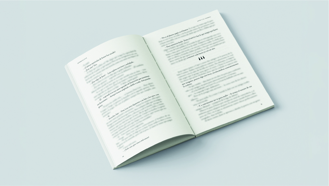Durante el proceso de escritura de esta novela (aún no publicada) desarrollé su diseño y maquetación en una versión preliminar. La propuesta visual parte del diálogo entre lo clásico y lo contemporáneo, lo que se refleja en una portada con una rotulación del título especialmente diseñada para transmitir esa dualidad.